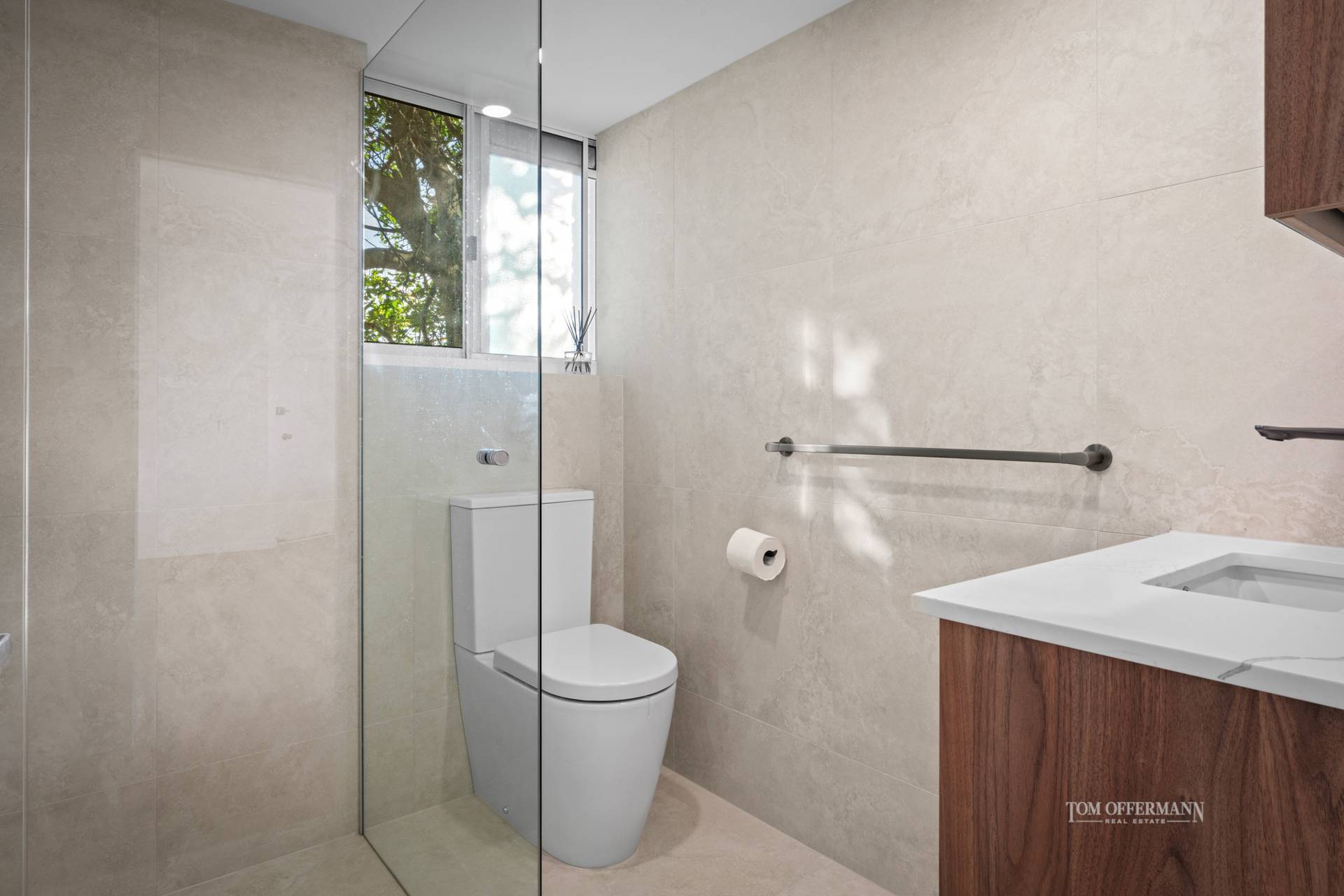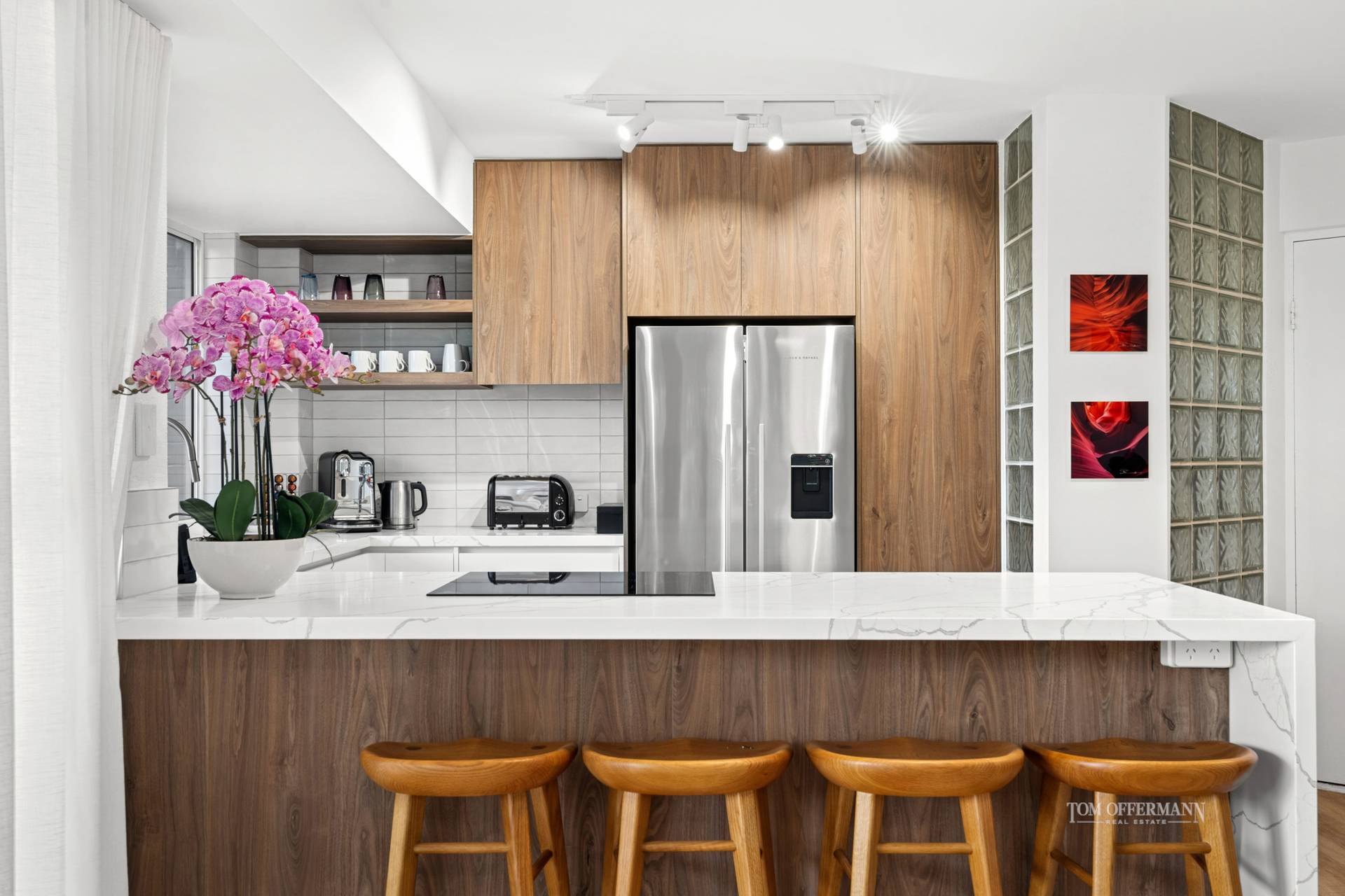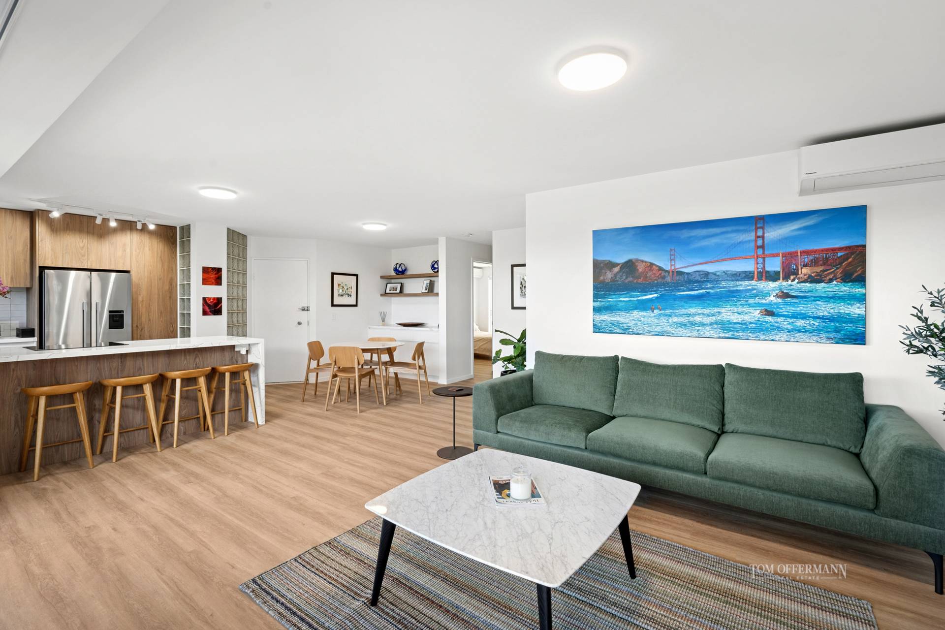 Meticulously transformed, the apartment blends timeless coastal charm with refined modern style. Warm timber look floors, crisp white shutters and a flowing single-level layout create an inviting, light-filled ambiance. The designer kitchen takes centre stage, complete with stone waterfall benchtops and premium Miele appliances - ideal for easy everyday living or entertaining with flair.