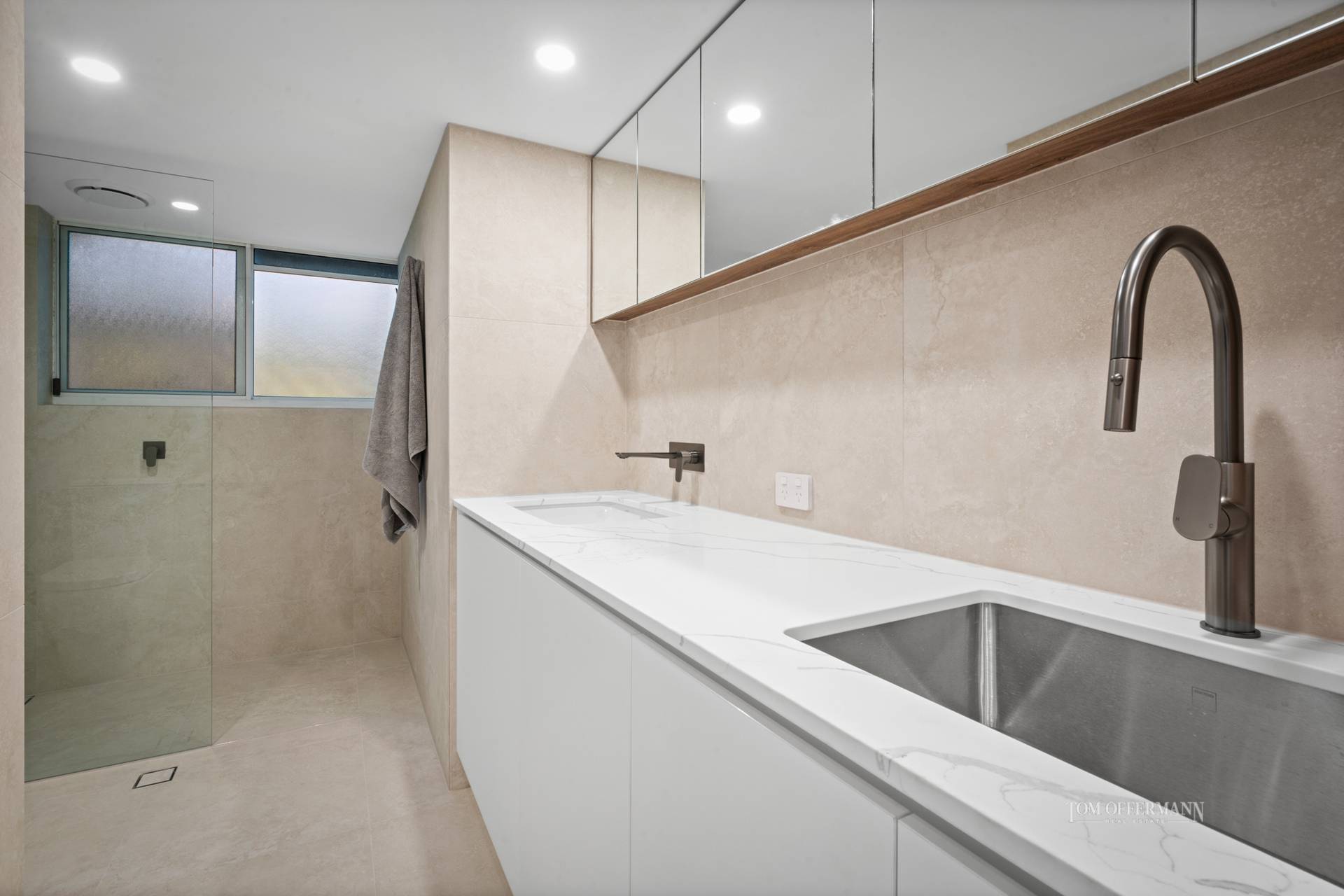 Stylish high end bathrooms feature contemporary finishes, including a cleverly integrated European laundry for added convenience.
