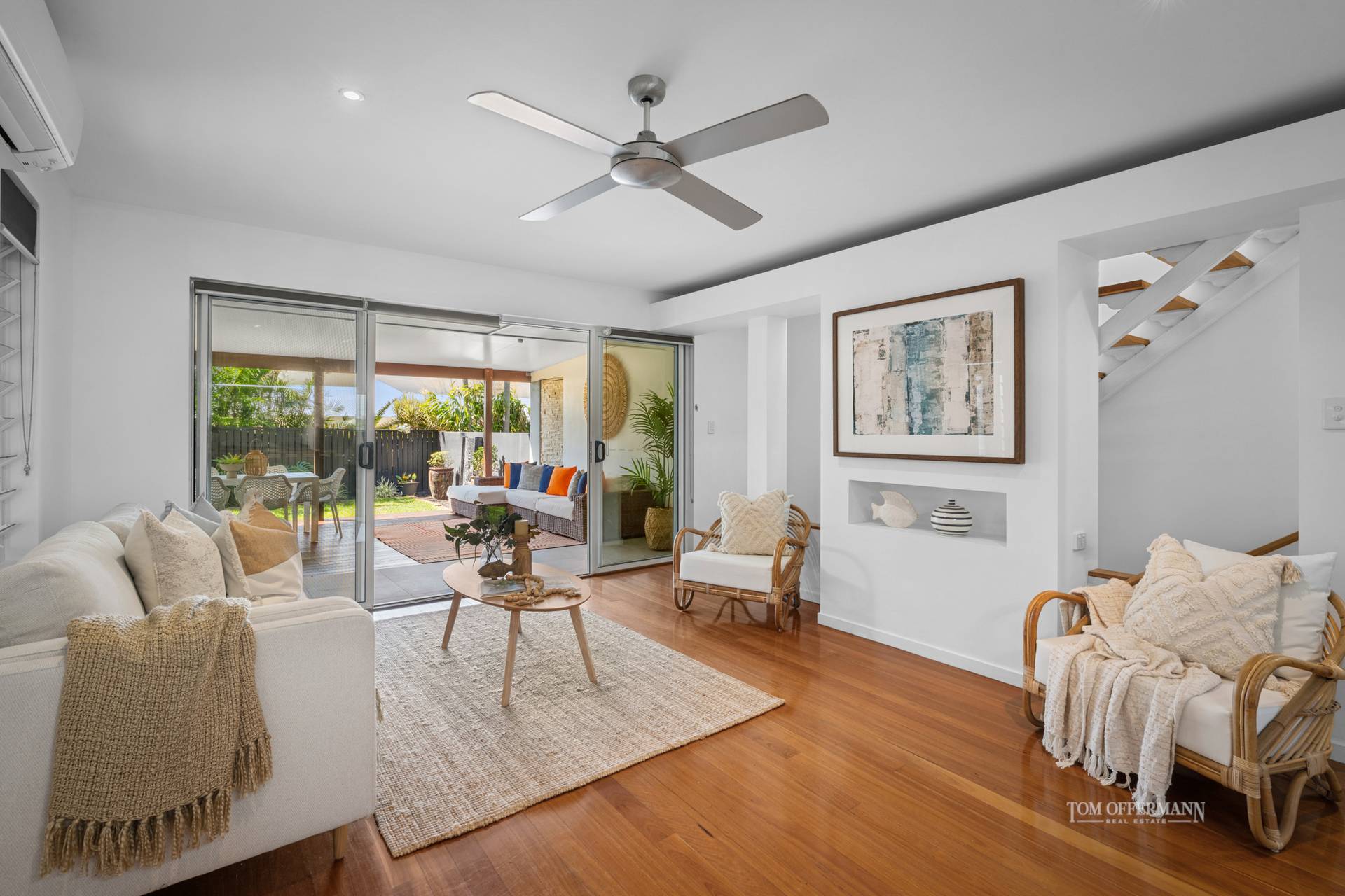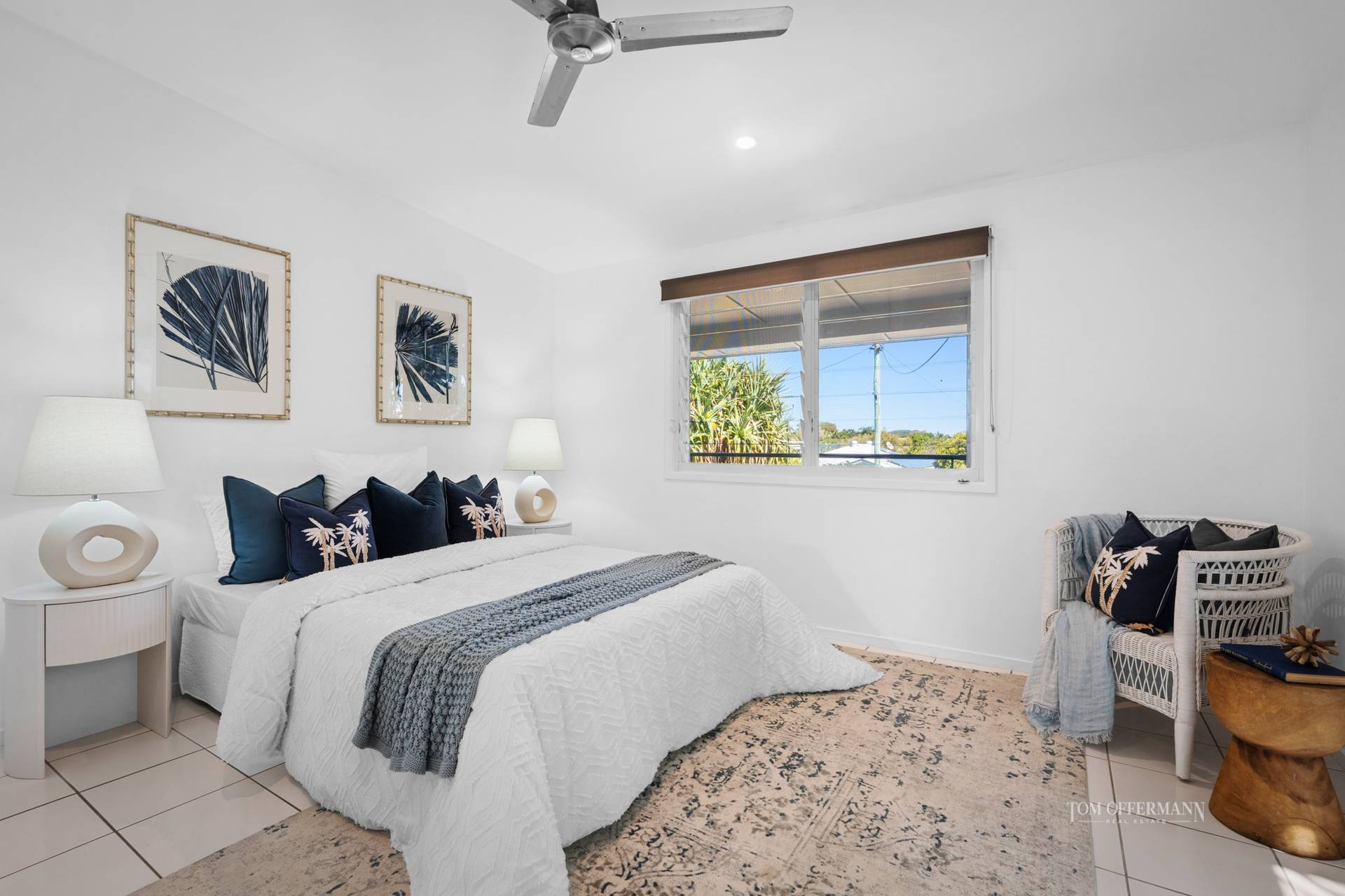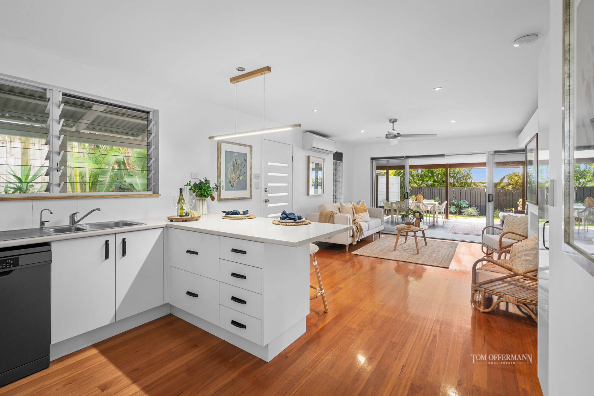 Immerse yourself in fresh ocean breezes and carefree living in this relaxed coastal oasis with a spacious open plan living area, grassed backyard, manicured gardens, elevated views across the treetops, and a guest retreat, all positioned only metres from the white sands and surf of Sunrise Beach.