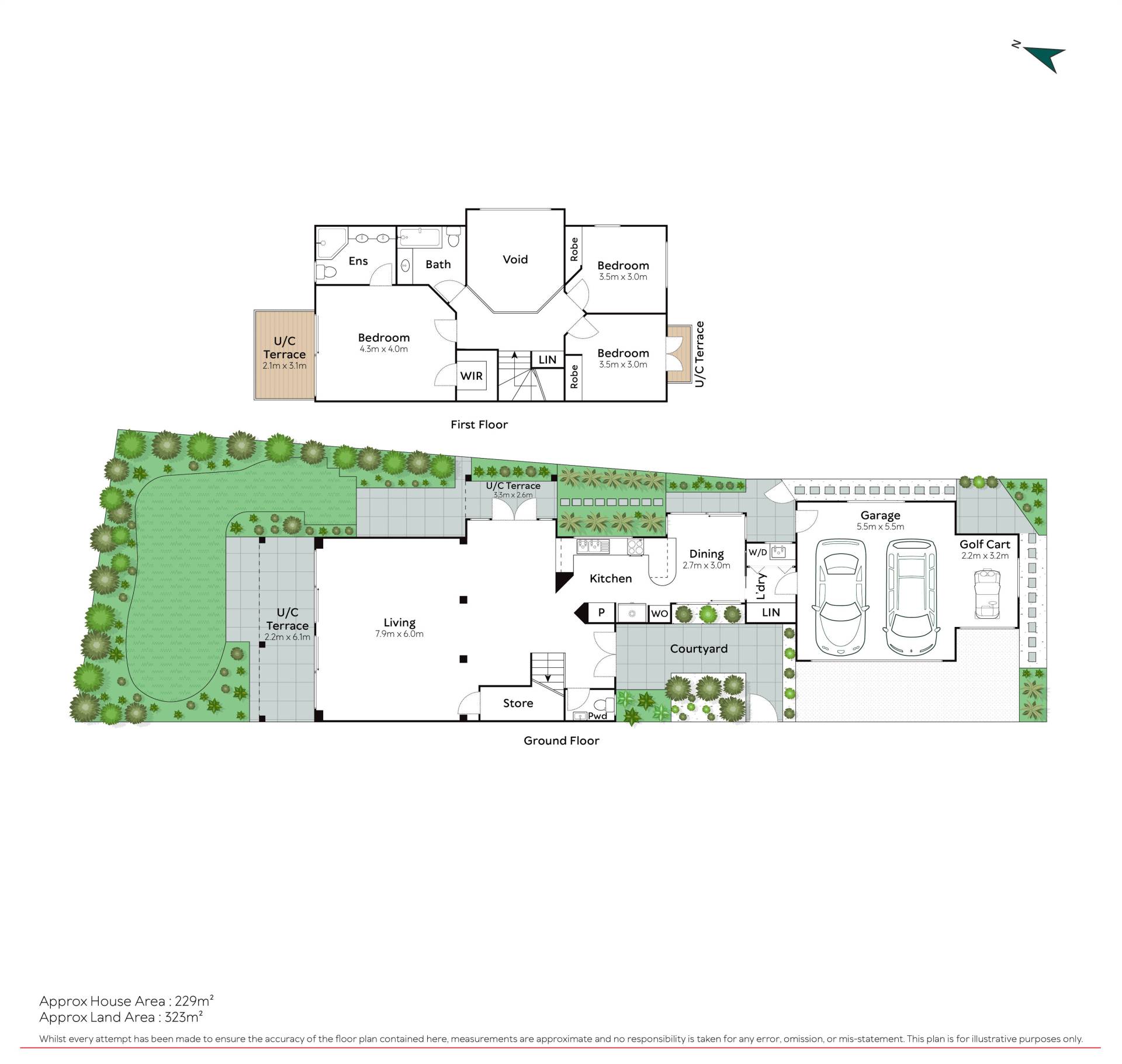 - Garage: Double with internal access + golf cart bay