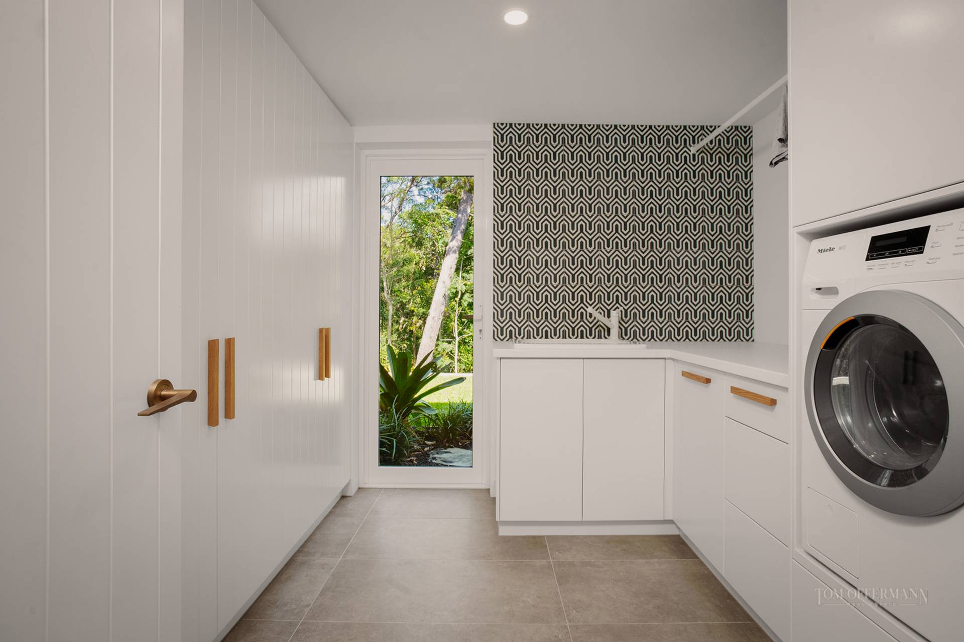 Kitchen: Meile appliances, built in fridge/freezer/dishwasher, stone benchtop; servery window; BBQ