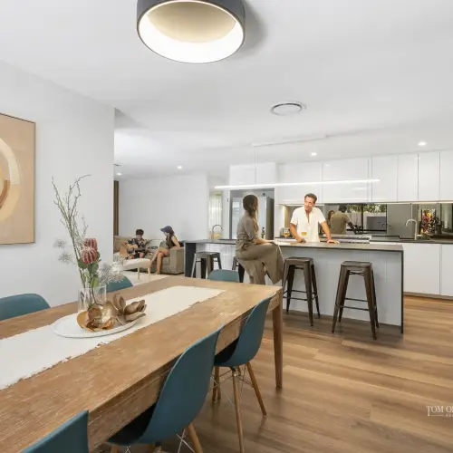 An impressive suite of notable features includes 16kW ducted inverter air-conditioning, ceiling fans, hybrid flooring, stunning feature wall in lounge, floor to ceiling tiles and brushed brass tapware in luxury bathrooms, built-in study nooks in two of the bedrooms, direct terrace access from main bedroom, solar power, and solar hot water.
