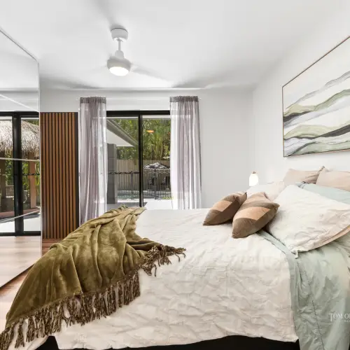 Despite its private and peaceful setting, it offers exceptional convenience: within a five-minute drive and cycling distance of private and public schools, five minutes to Noosa Civic and Noosa Hospital, less than 10 minutes to Noosa River and Gympie Terrace dining, and 13 minutes to Noosa Main Beach and Hastings Street. All the essentials and the fun stuff are quick and easy to access.