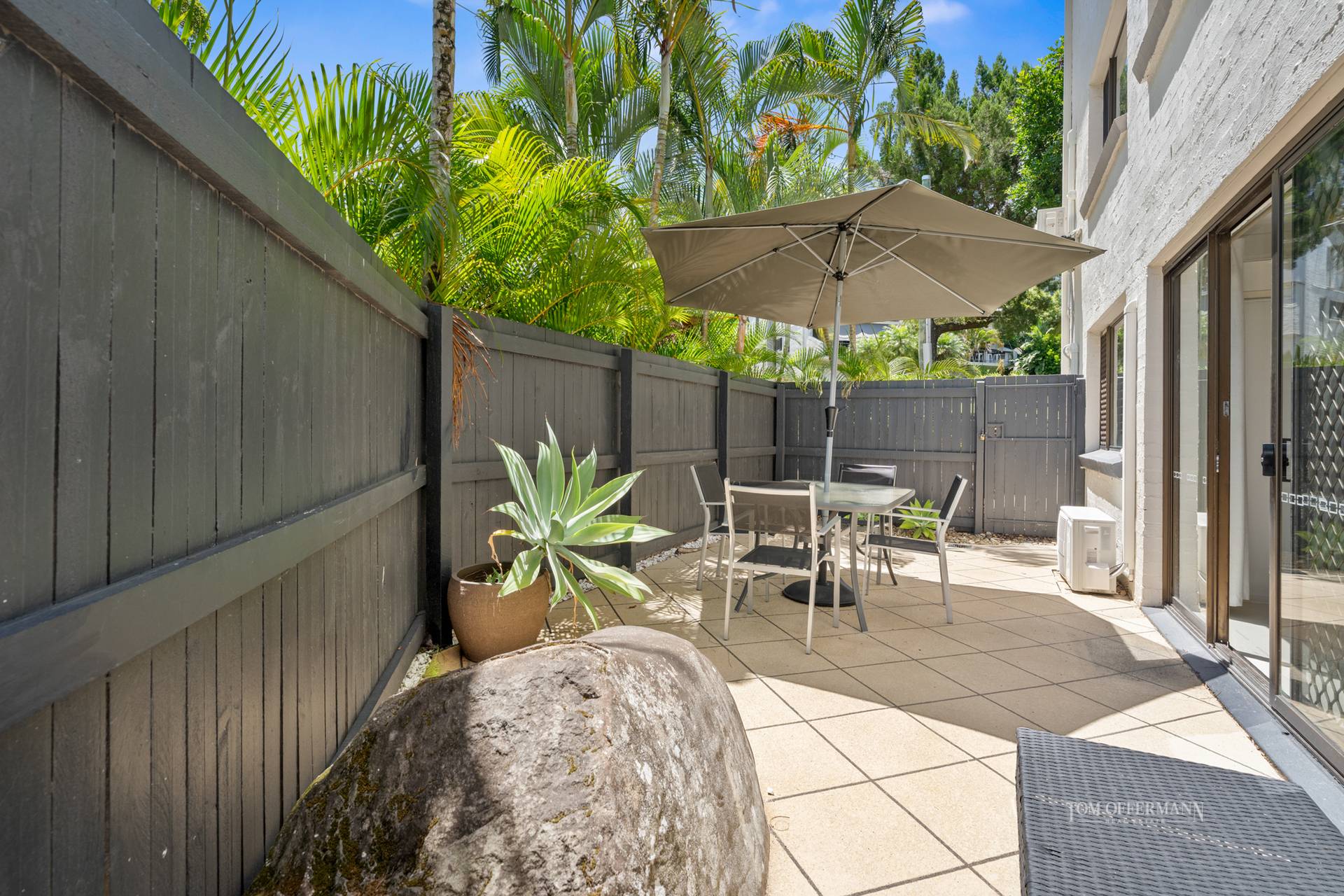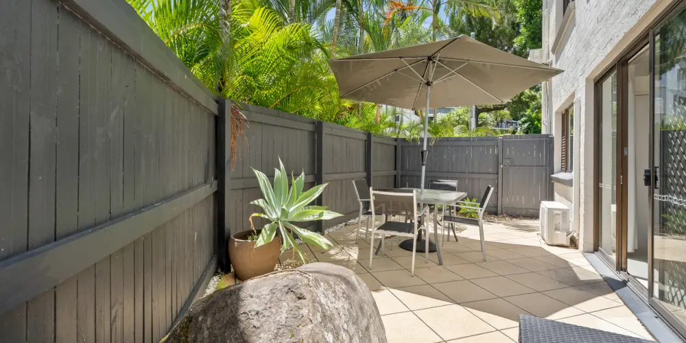 A high timber fence adds to the privacy factor, so it is a wonderful space for entertaining and sun worshippers, or why not grow kitchen herbs and colourful geraniums in pots.