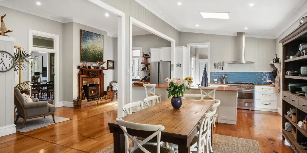 Come inside. Admire polished rich hoop pine flooring throughout, oh-so lofty pressed metal ceilings and light roses, retro chandeliers, VJ panelling, and decadent casement as well as fan leadlight window panes.