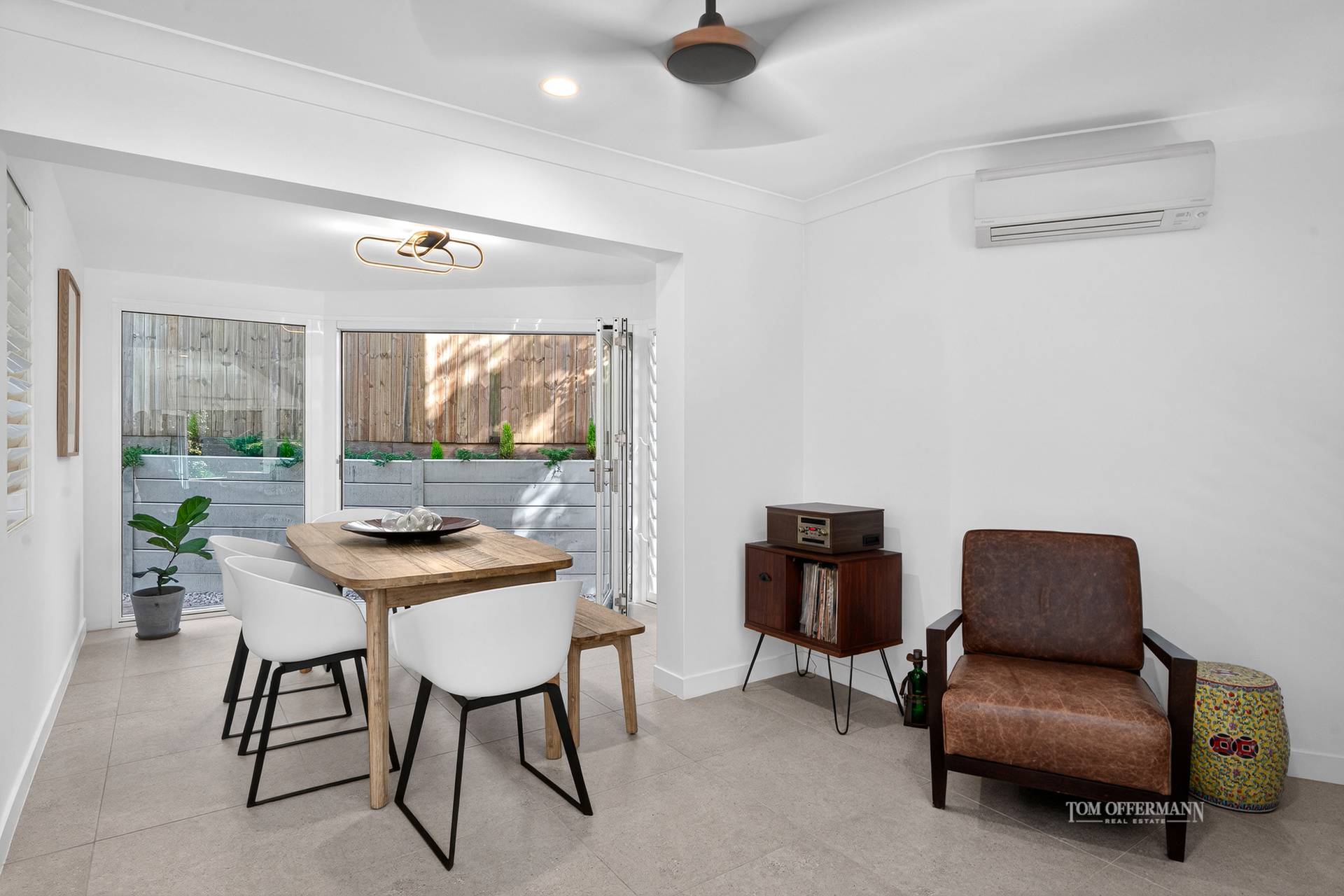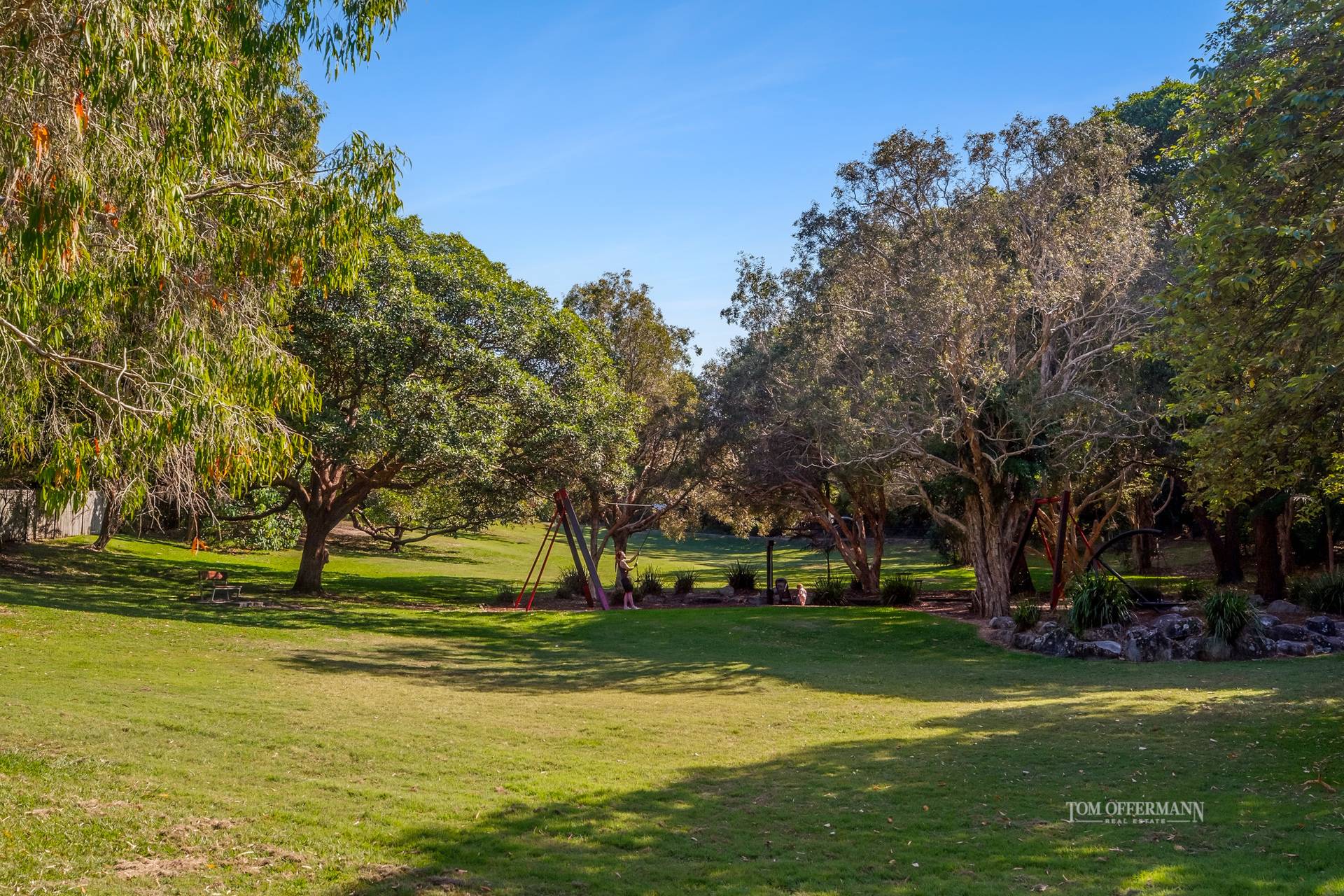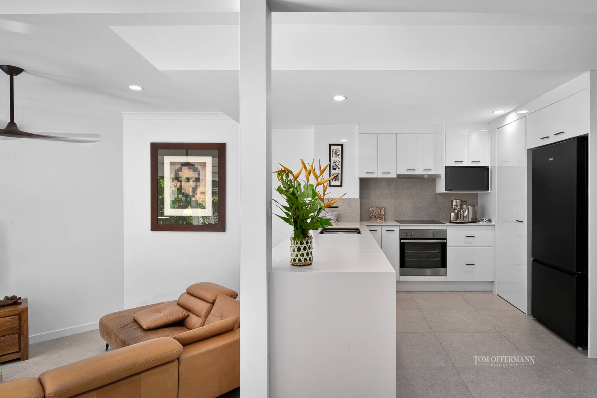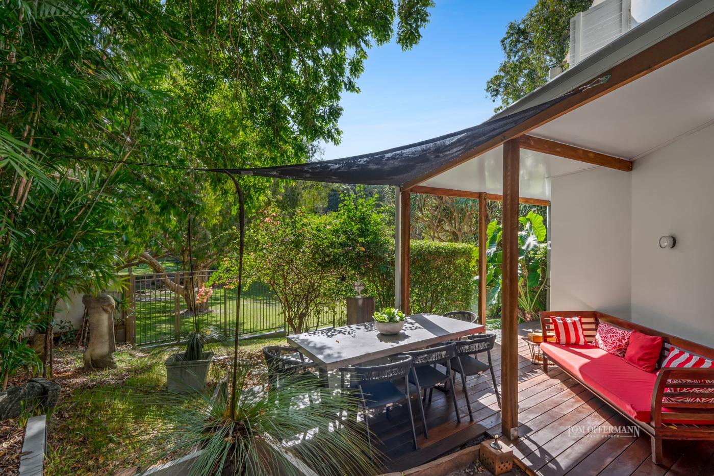 Adjoining is a laundry, powder room and a drying area in the rear garden, which features a row of lillypillies along the fence line, plus palms, shrubs, garden art and pavers leading to the park gate, which is exclusive to the townhome.